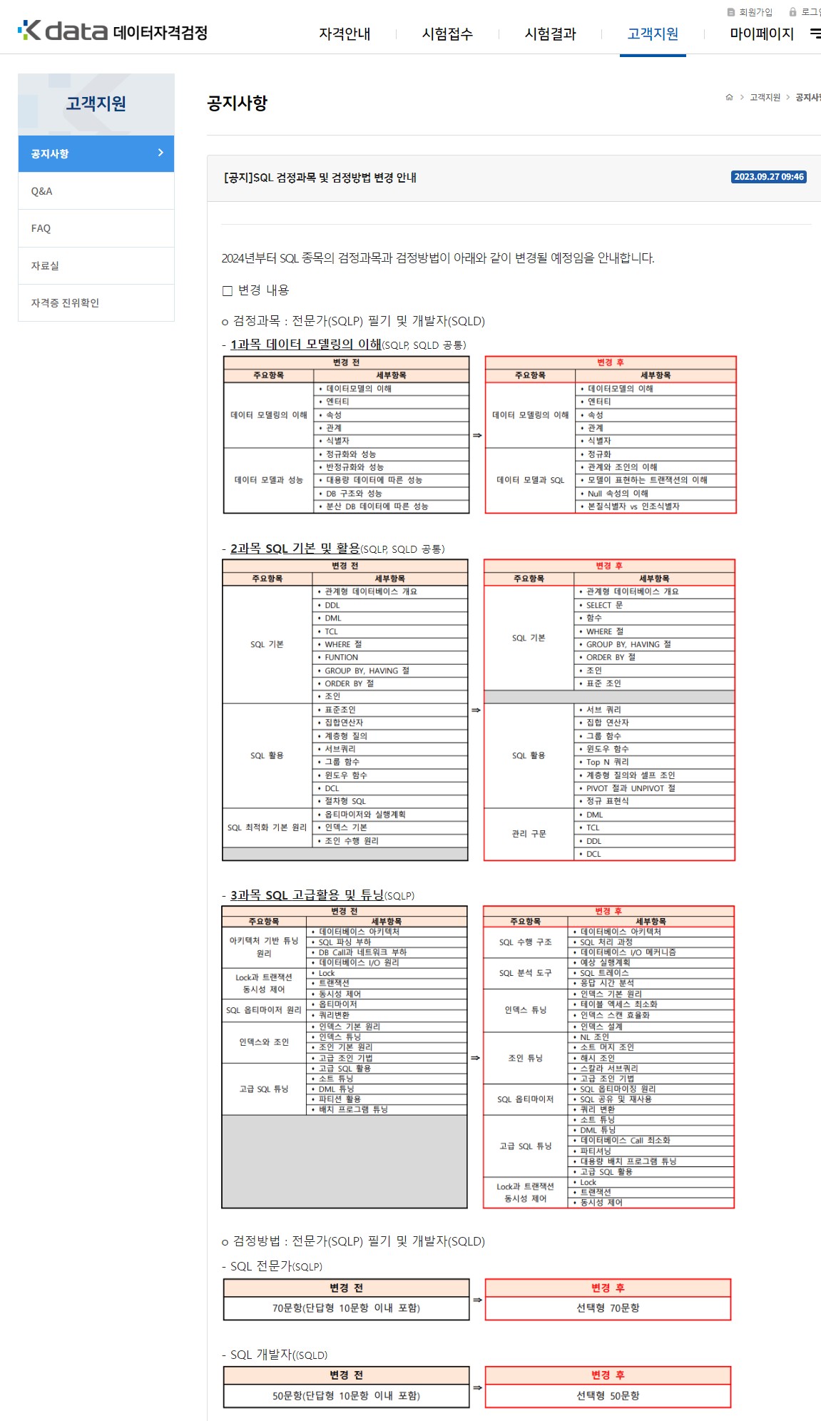 2024년부터는 SQL의 시험과목과 방법이 조금 변경된다고 하오니